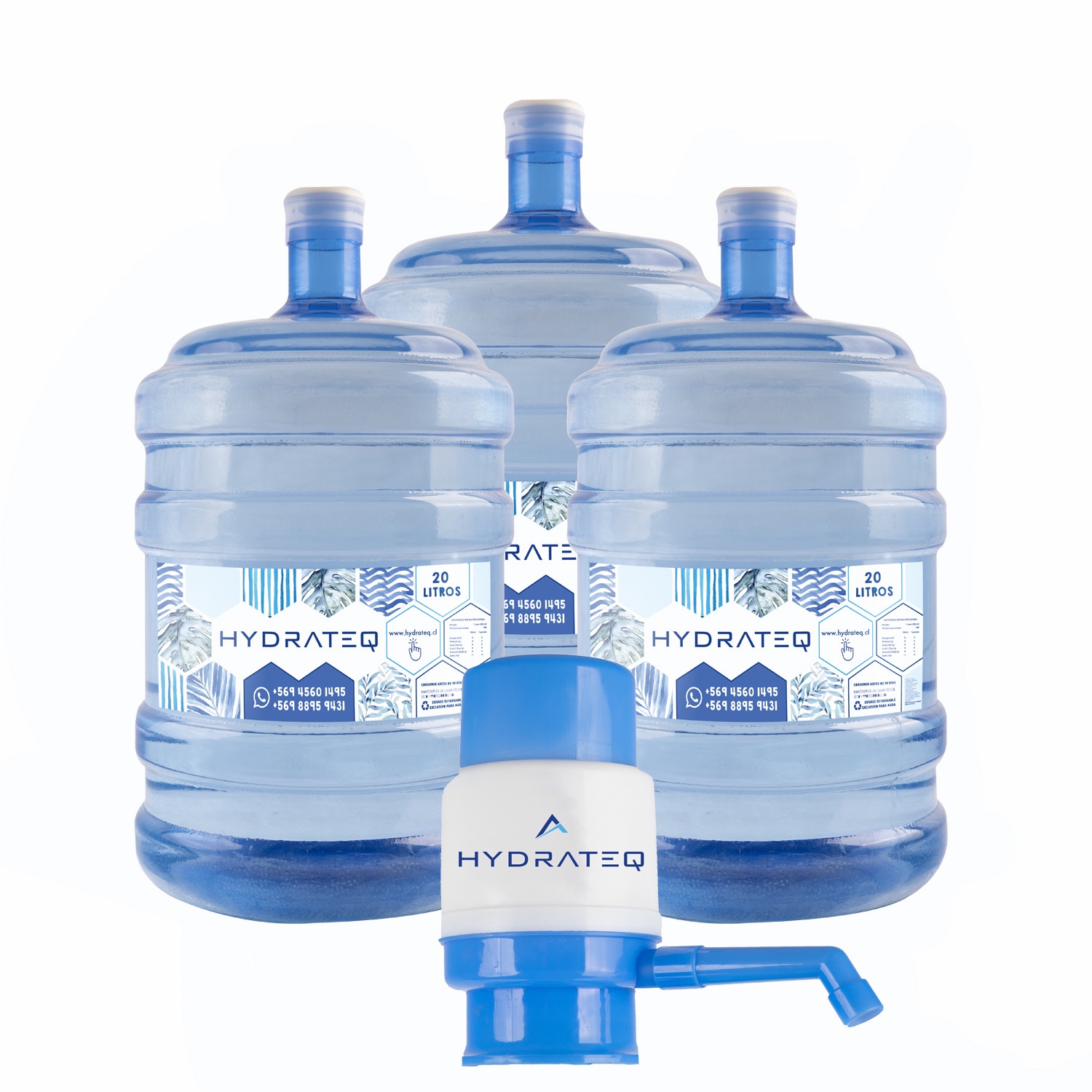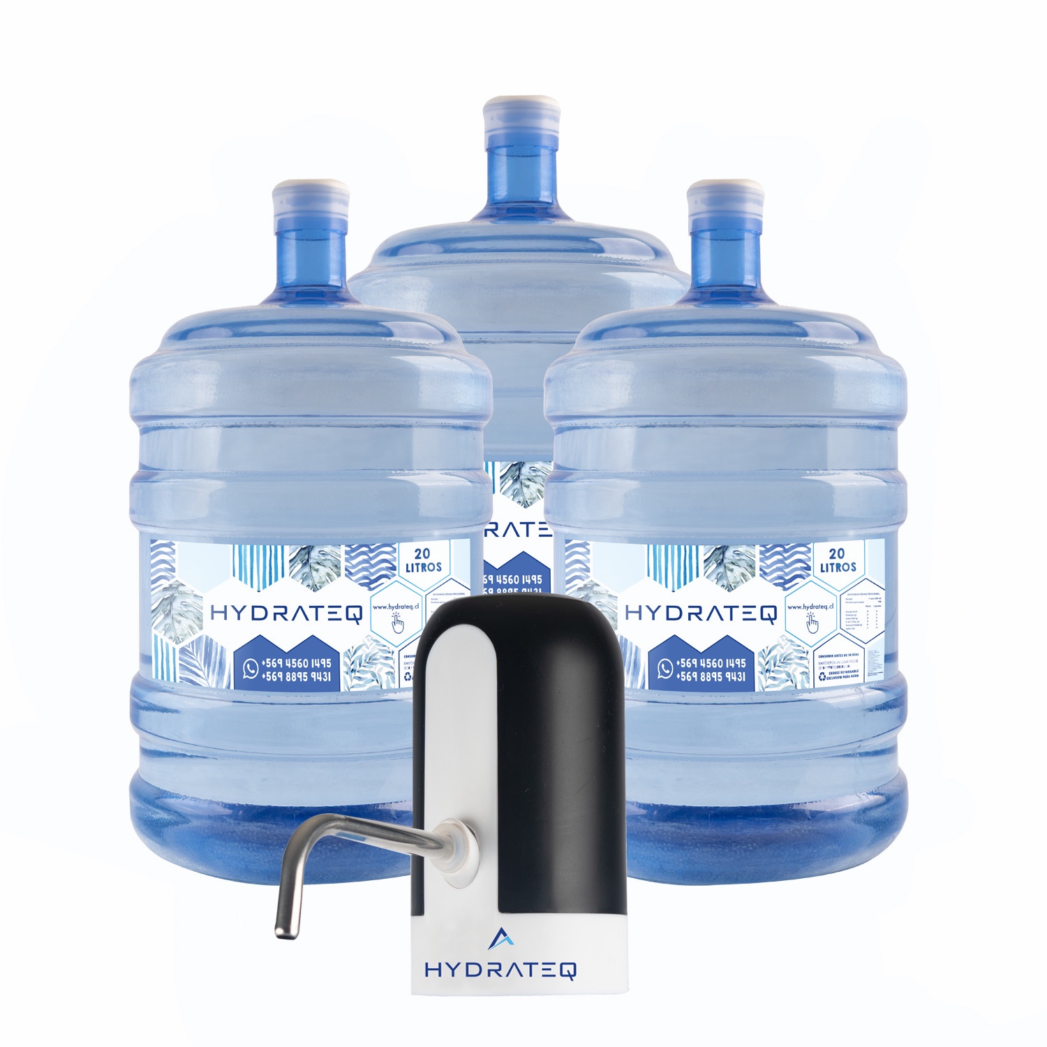Pack incluye: 1 Dispensador de Caudal + 3 Bidones de 20 litros de Agua Purificada. Con sus respectivos envases. Así, en la siguiente compra sólo nos solicitas las Recargas porque ya tienes los envases.